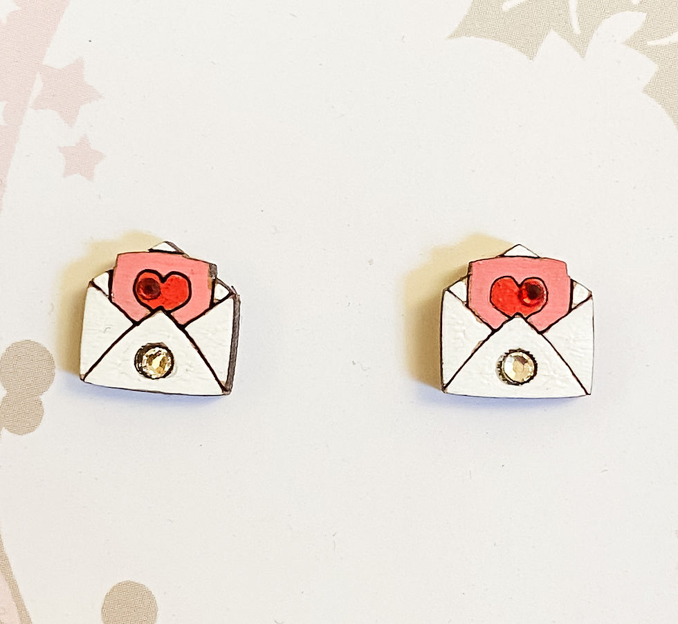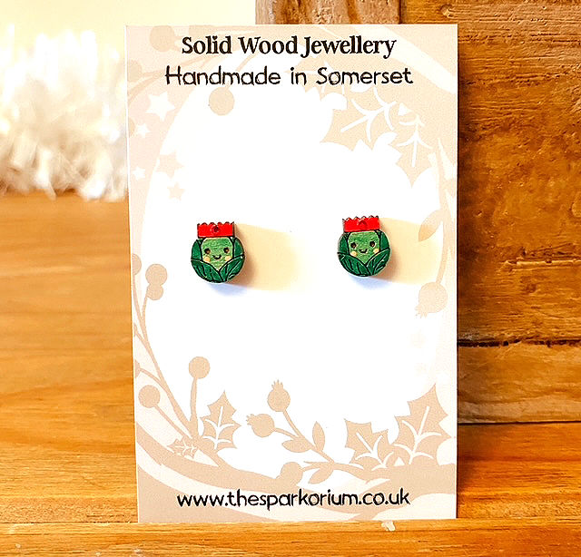 Our whole range of solid wood stud earrings with surgical steel posts, laser cut and hand painted.
